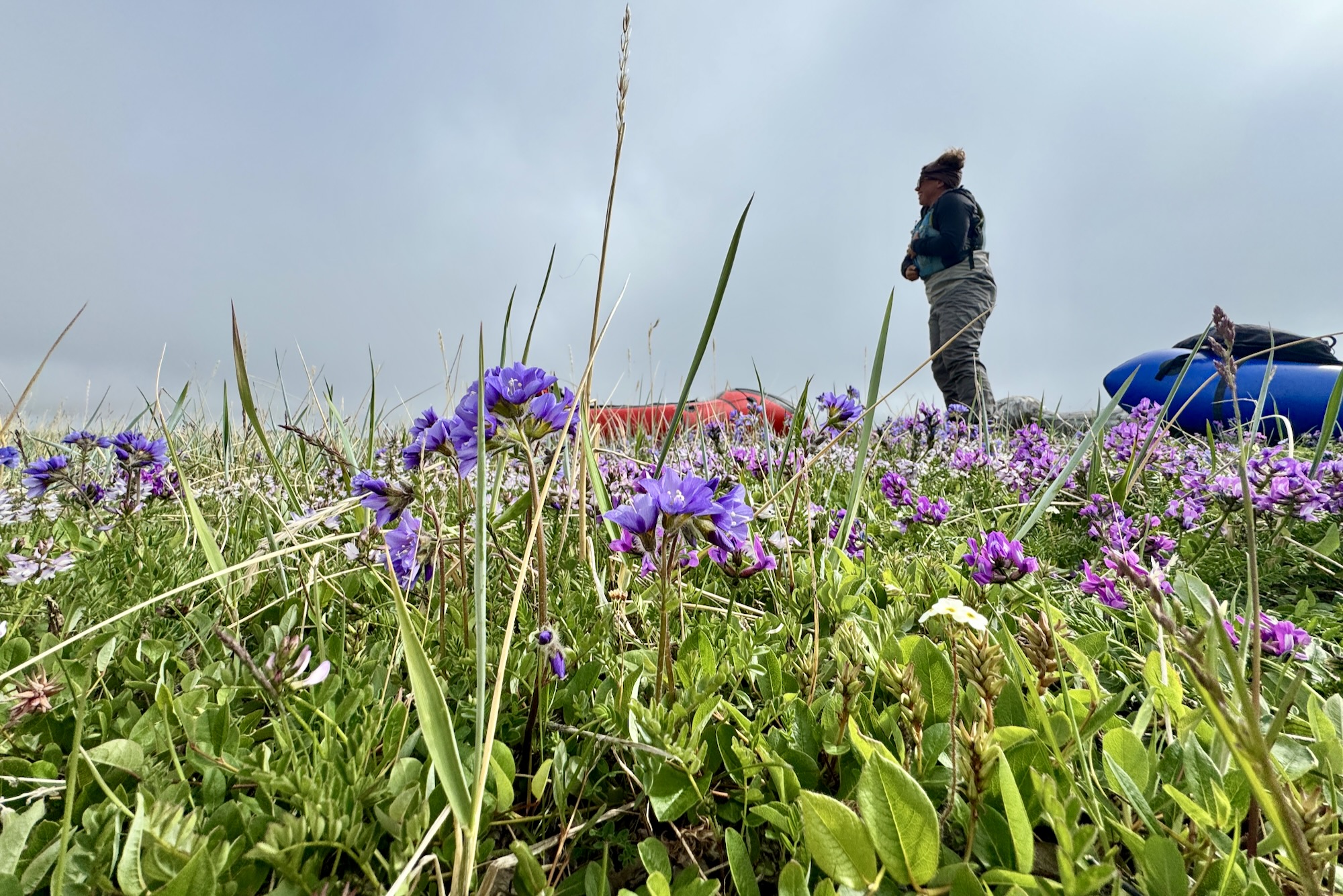 We spent the next day with packrafting’s three h’s: hemming, and hawing about whether there was enough water to float, and then hiking a short distance before repeating the hemming and hawing. We stopped just short of the first significant tributary, unwilling to pass up a beautiful dryas and wildflower bench.